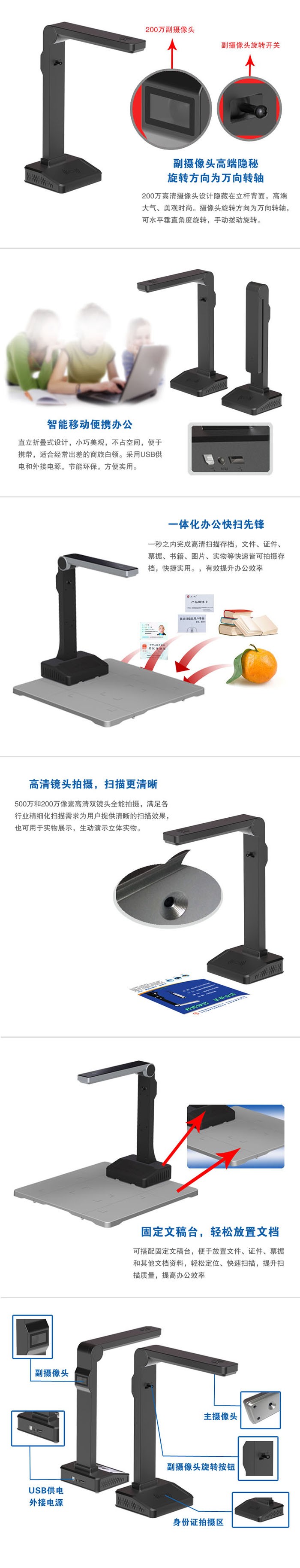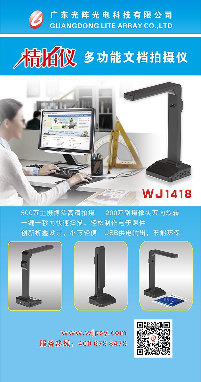 廣東光陣,中國最大高拍儀生產(chǎn)廠家 精拍儀是一款辦公領(lǐng)域革新性產(chǎn)品,她具有折疊式的超便捷設(shè)計,一秒鐘完成高速掃描, 具有OCR文字識別功能,可以將掃描的照片識別轉(zhuǎn)換成word、Excel等多種文檔,準(zhǔn)確率達95%以上。還能進行拍照、錄像、復(fù)印、實物投影、網(wǎng)絡(luò)無紙傳真等操作。她完美的解決方案讓辦公更輕松、更快捷、更環(huán)保。廣泛應(yīng)用于政府部門、醫(yī)學(xué)機構(gòu)、航天航空,金融行業(yè)(銀行、證券、保險),學(xué)校等有文件需掃描歸檔或復(fù)印存檔的領(lǐng)域。