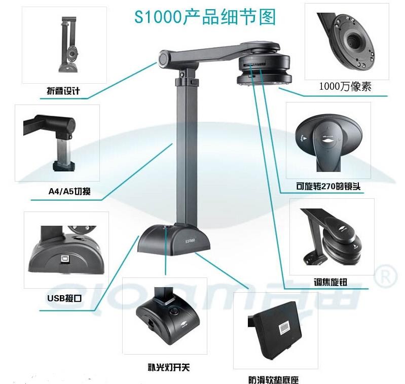 8,金屬機(jī)身,升降自如,穩(wěn)固耐用。270度旋轉(zhuǎn),拍攝更自由。超強(qiáng)的OCR文字識別功能,識別多達(dá)180多種語言。![]()